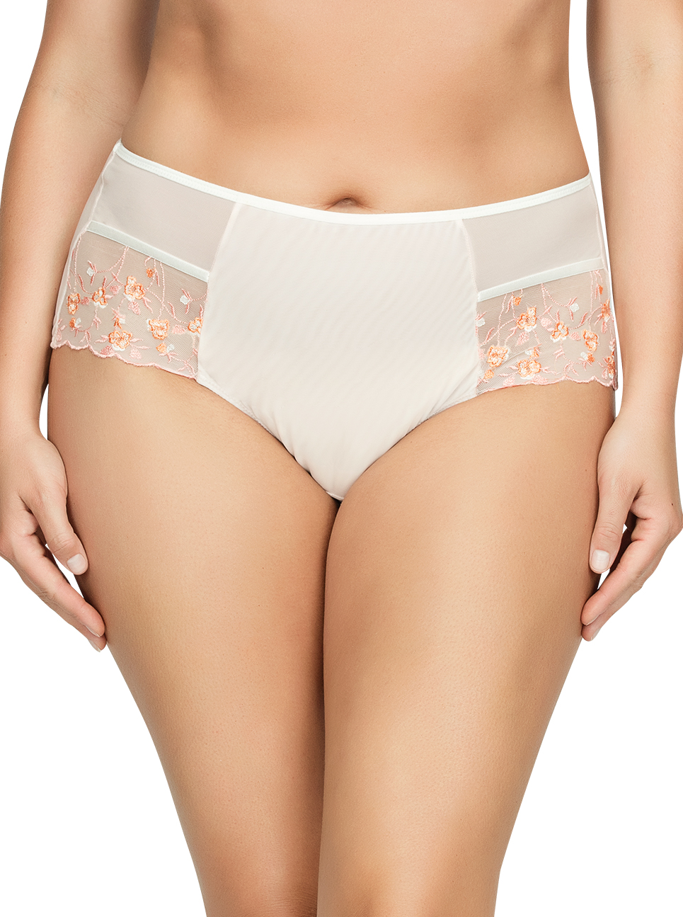 A vintage-inspired highwaisted brief with flattering coverage and eyecatching embroidery.
