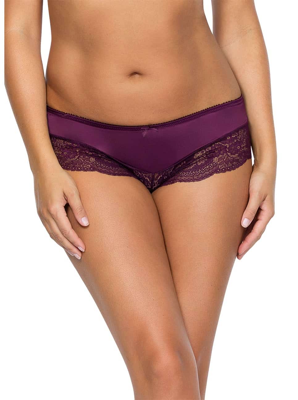 Luxe satin and scalloped lace create an irresistible silhouette.