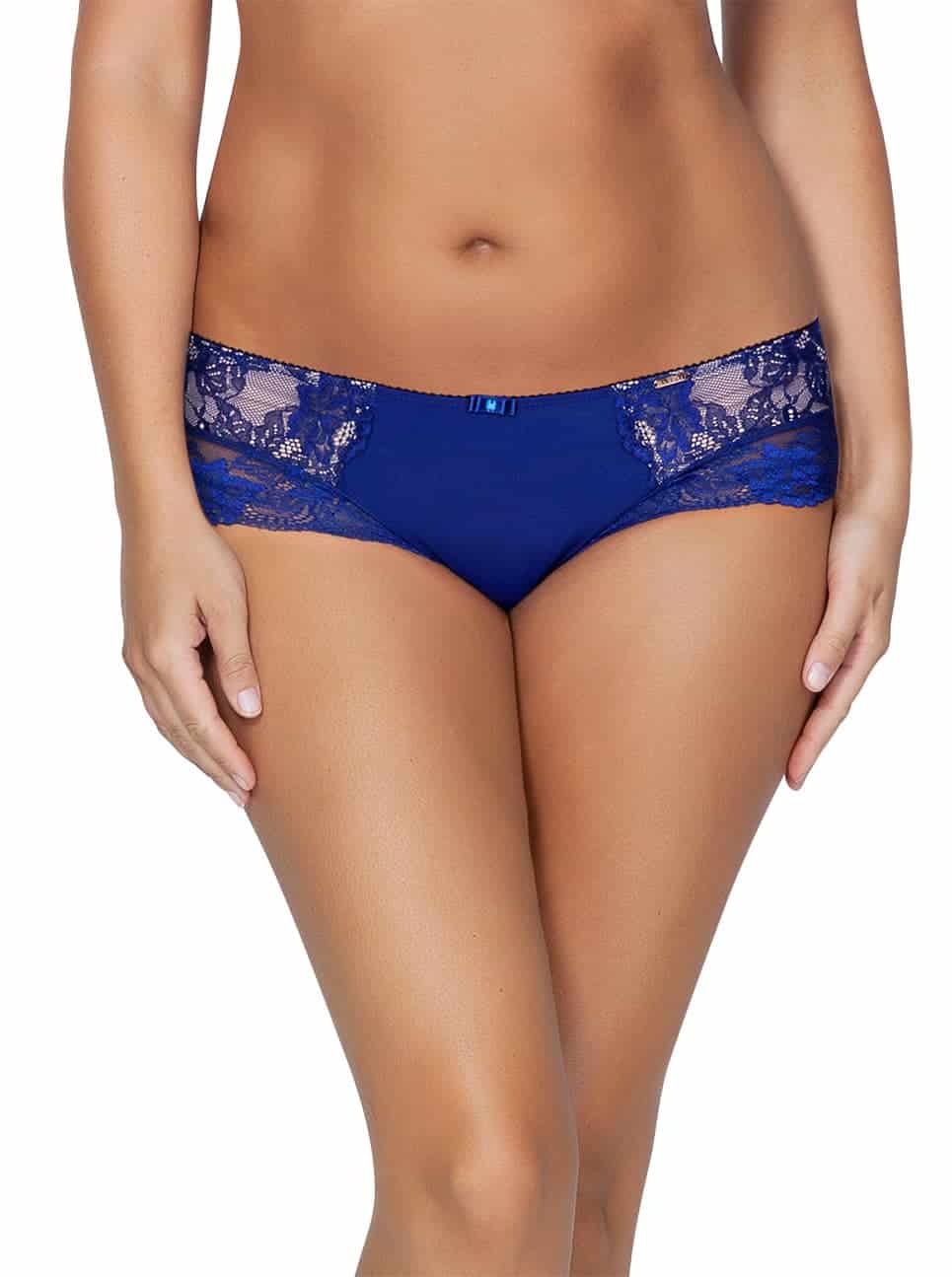 Retro-inspired in all-over microfiber with a flattering fit and floral lace and mesh panels. Accented with a satin bow and jewel. Low-rise with moderate coverage.